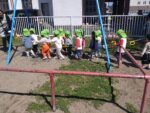 0歳児は、クシャクシャお花紙を丸めたり、ペタペタ絵の具を塗ってみたり、様々な経験を作品にしました。1歳児は、スタンプ遊びを楽しんだものが大好きなトンボに変身!スズランテープを割けるようになったことも成長を感じます✨