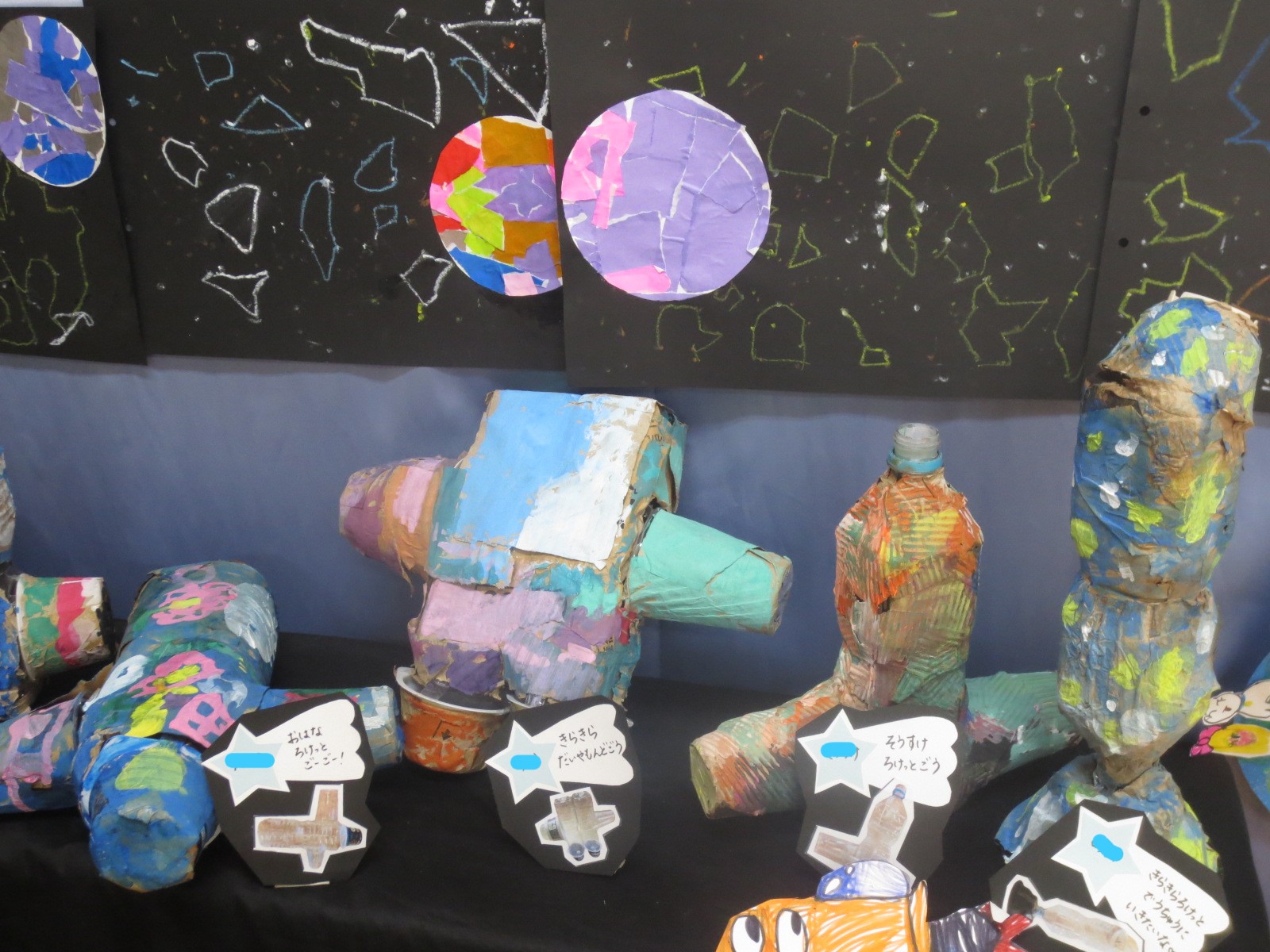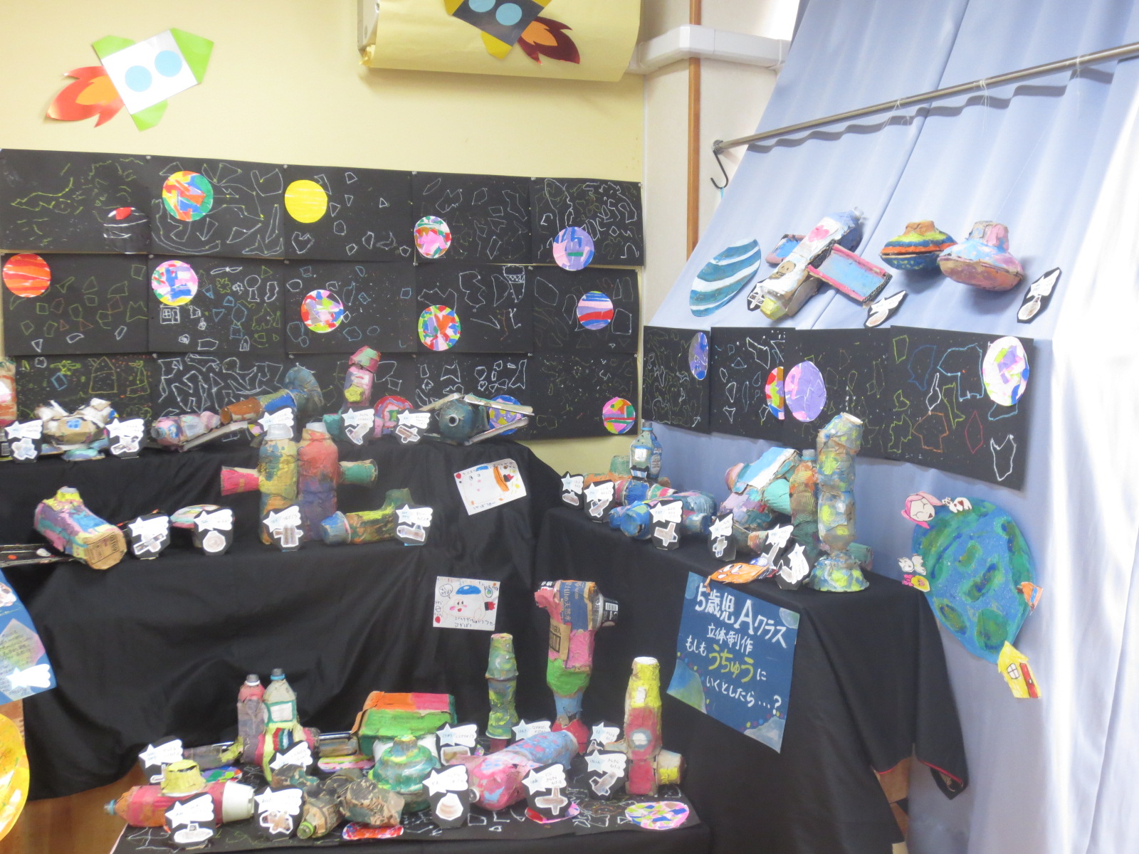 先日「うちゅうえんそく」という絵本を読んでもらった子ども達。