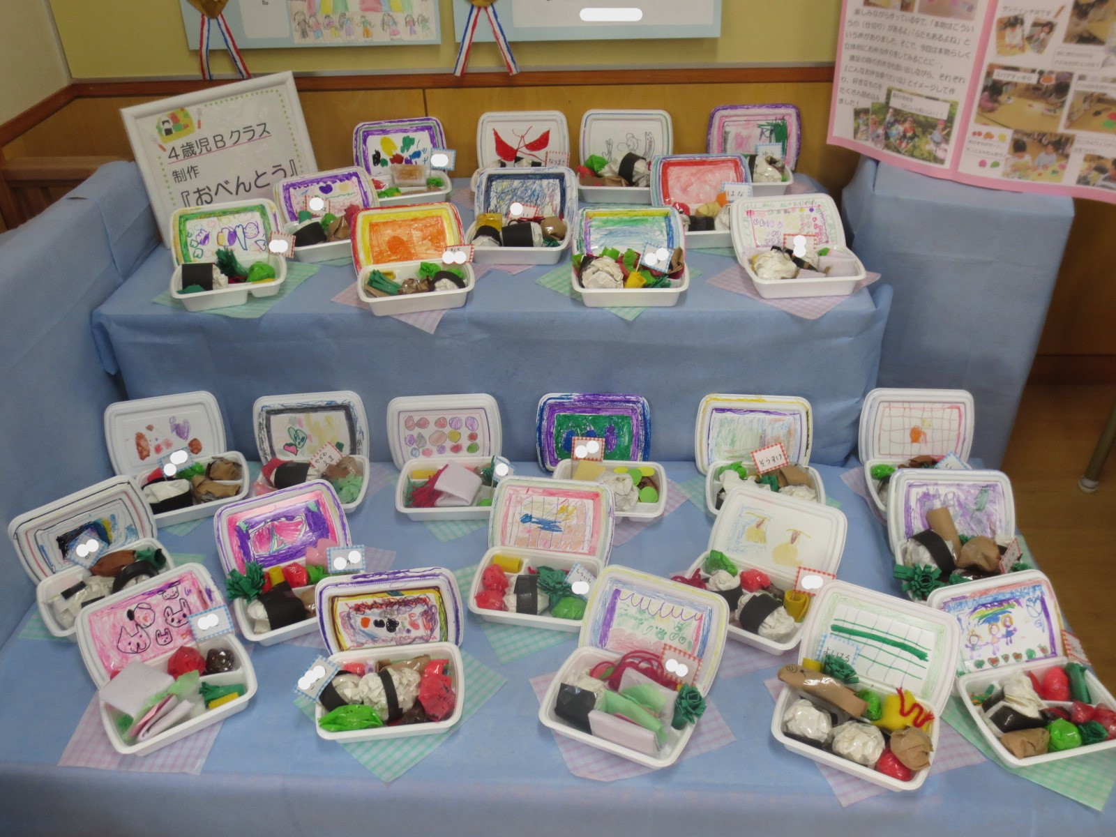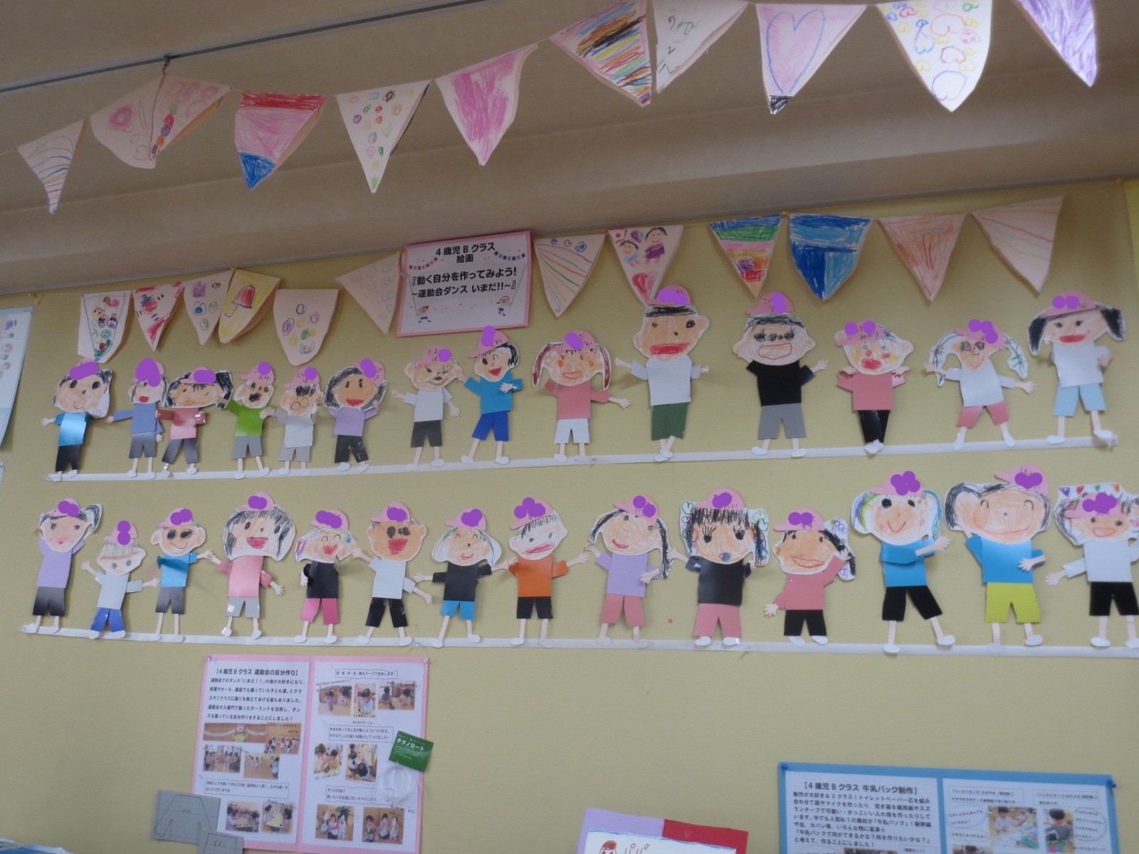 4歳児は楽しかった運動会のダンスを思い出し、当日と同じ服装と動きを再現しました🎵遠足で食べたお弁当や、身近な素材牛乳パックを使って自分の好きな物を作りました!年中さんになると、自分のイメージを形にすることも上手になってきます✨