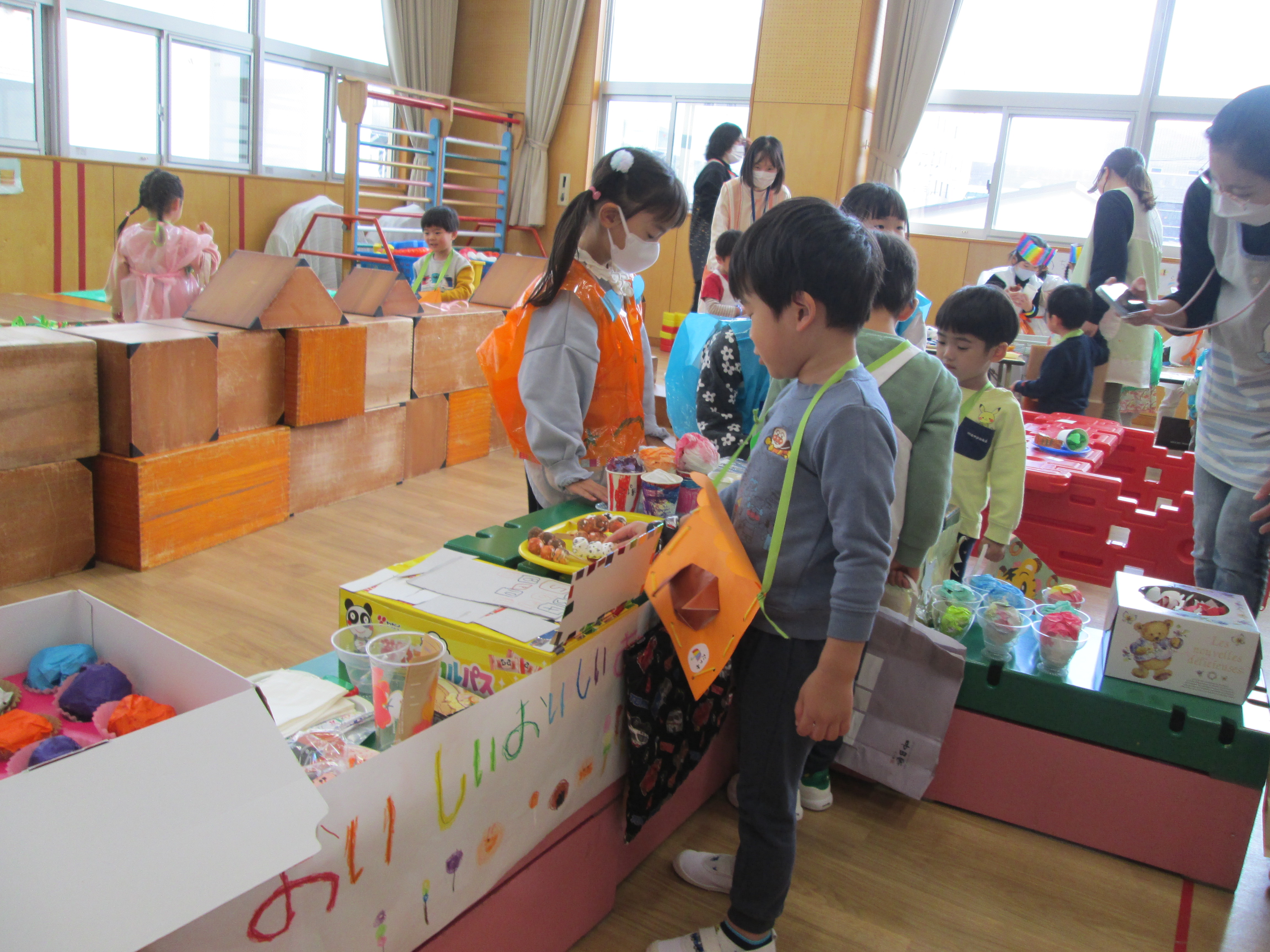 夏本番の7月12日土曜日・・。年長児が楽しみにしていた”おたのしみ会!”が開催されました☀わくわくドキドキこの日のためにこつこつと準備をしてきた年長児の子ども達は3つのグループにわかれて活動してきました。そのなかで自分の考えを伝えたり、友だちの意見を聞きながら進めていくことができました‼