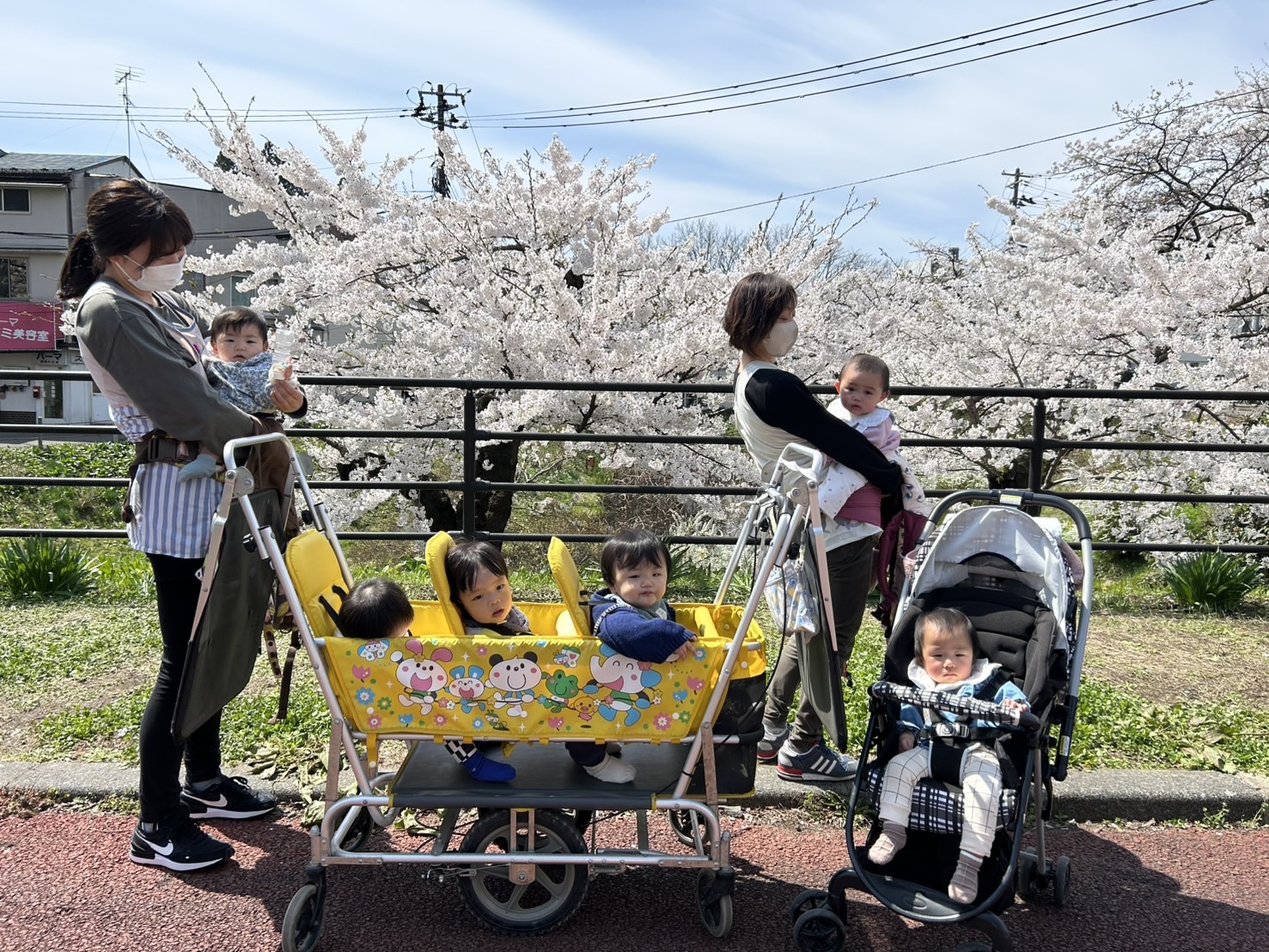 2歳児いちごクラスは内丸緑地へ。普段からも散歩に出かけ、歩くことが大好き👍この日は歩くだけではなく、園に帰ってきてからのお楽しみがありました‼絵本でよく見ていた”お弁当🍱”今日はお家の方が作ってくれました・・子ども達にとって園で食べる初めてのお弁当❣わくわくしながら喜んで食べていました😀